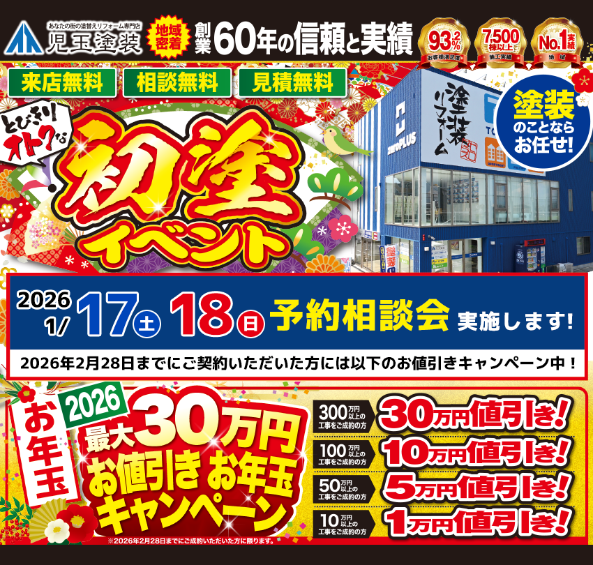 中川本社で2026年新春イベントを開催!2026年1月17日(土)・18日(日)は、リフォームに関する予約相談会を開催します!